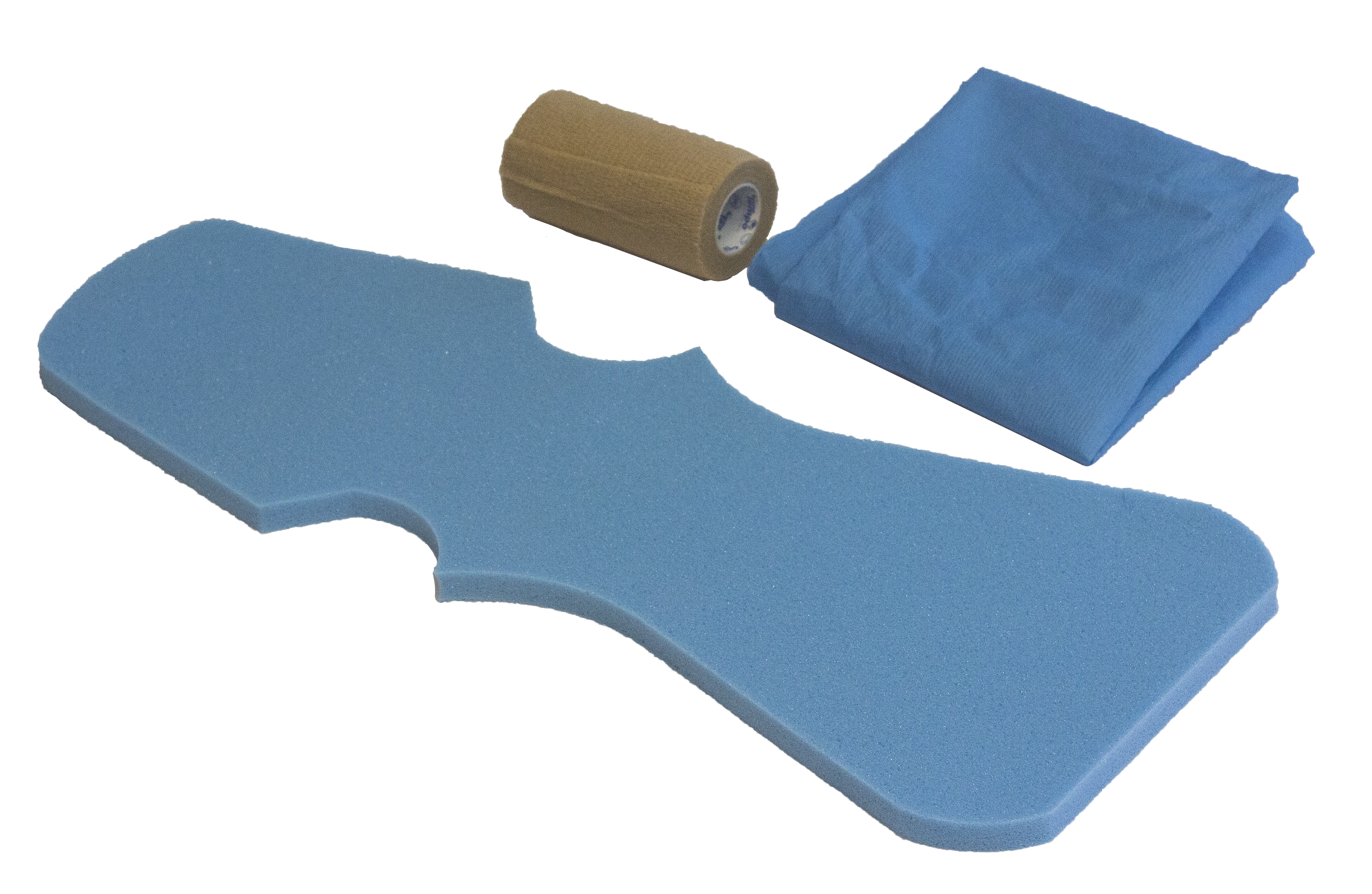 Soule Medical's Sterile Knee Holder Pad with cohesive wrap is designed to fit multiple knee positining systems. The memory foam padding and cohesive wrap help protect the patient from pressure sores, and abrasions while securing the foot to the boot. Perforations in the pad allows for a universal fit to the appropriate knee positioning system